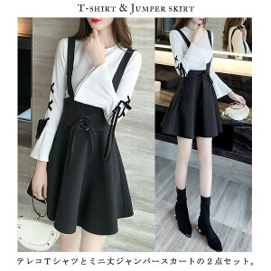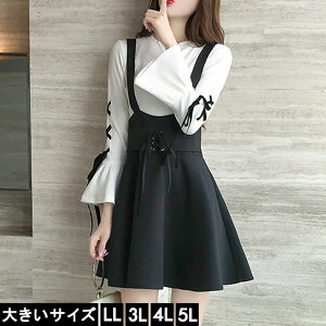 大きいサイズ レディース セットアップ ジャンパースカート サロペットスカート カットソー LL 3L 4L 5L ホワイトブラック 10代 20代 30代 40代 50代 13号 15号 17号 19号 新入荷 ネコポス不可